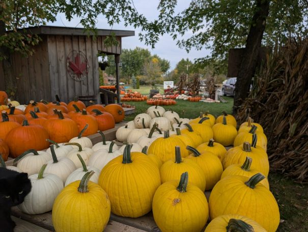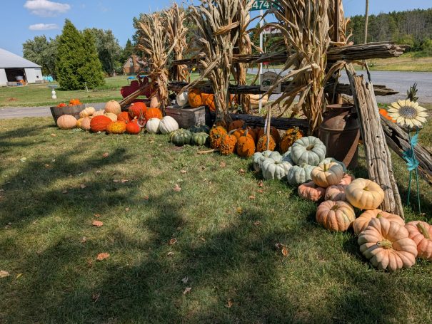 October 10 - It's not too late to get your pumpkins and fall decor before Thanksgiving! We've got HUNDREDS of pumpkins still in the field and ready-picked at the farm stand. We have pumpkins in every size and almost any colour you can imagine, gourds, straw bales and cornstalk bundles.