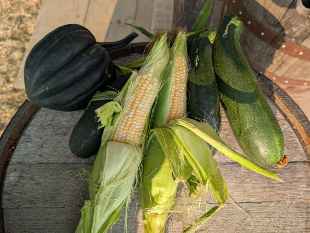 3 great crops ready: Sweet corn, Squash, Pie Pumpkins (It's never too early to start your fall baking ?)