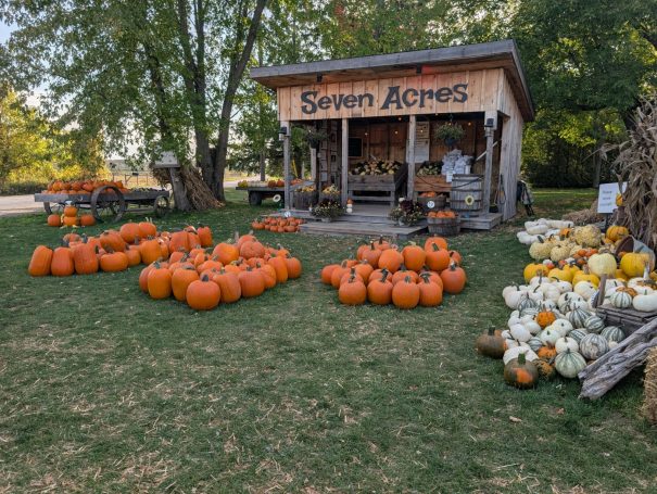 Seven Acres specializes in Sweet Corn, Pumpkins and Fall Décor (Straw Bales, Corn Stalks & Gourds) and Campfire Wood.