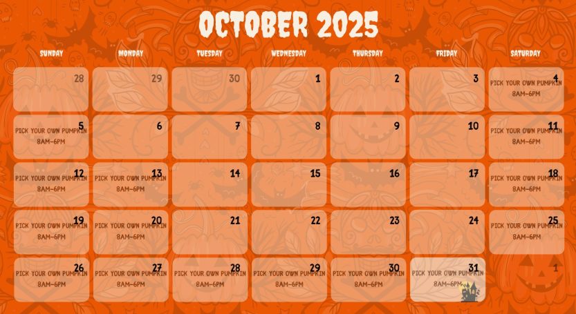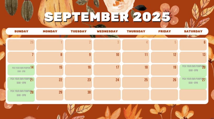 Pick-your-own pumpkins starts September 29th and will run every Friday, Saturday and Sunday.